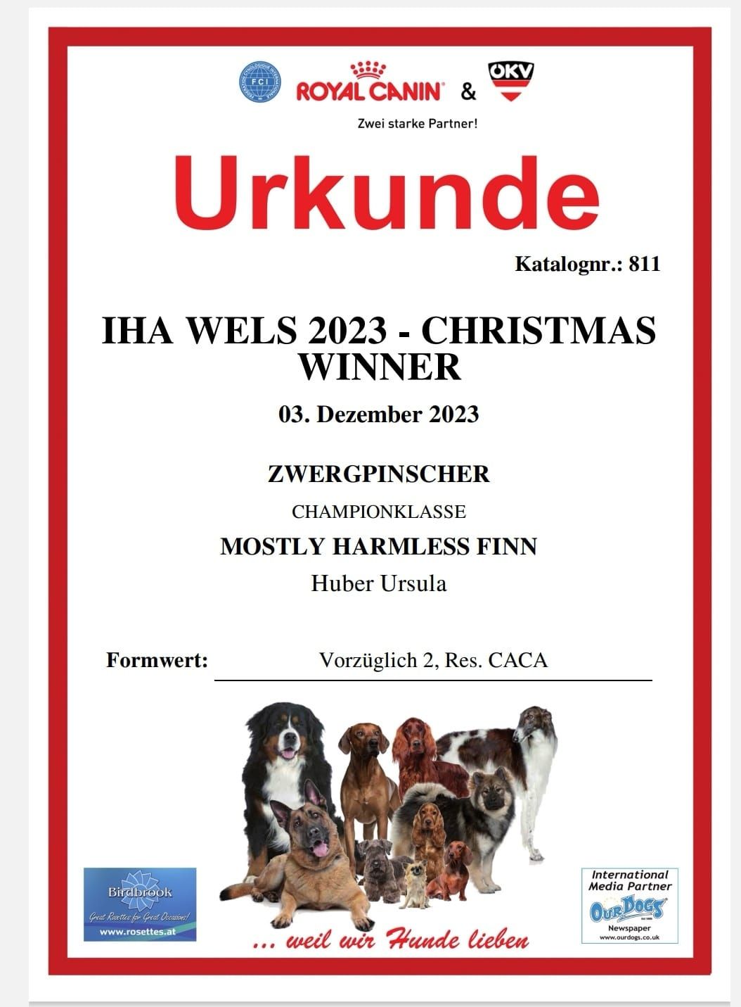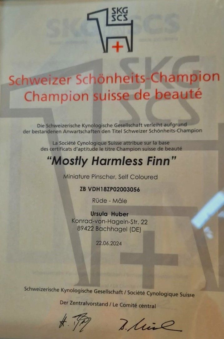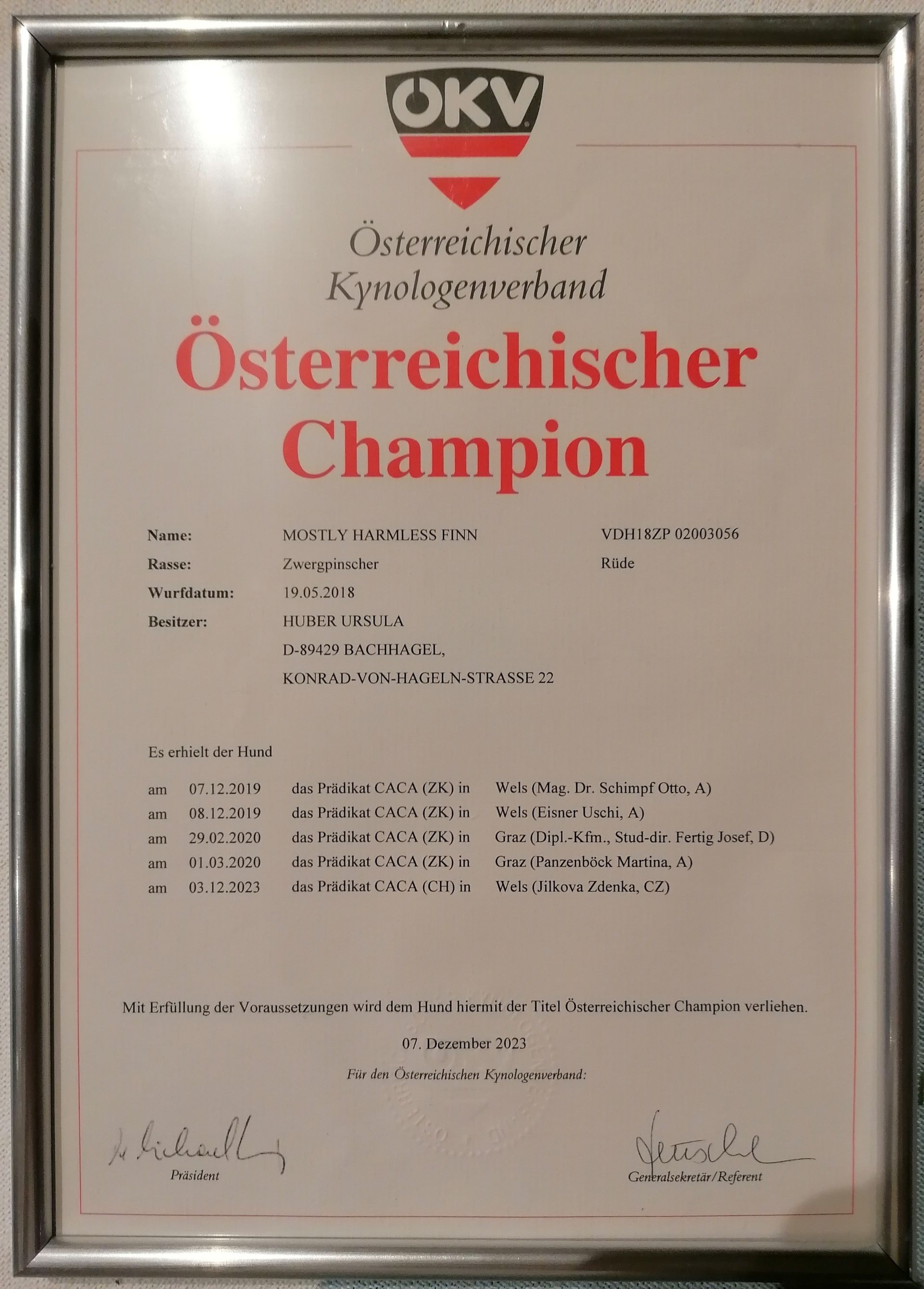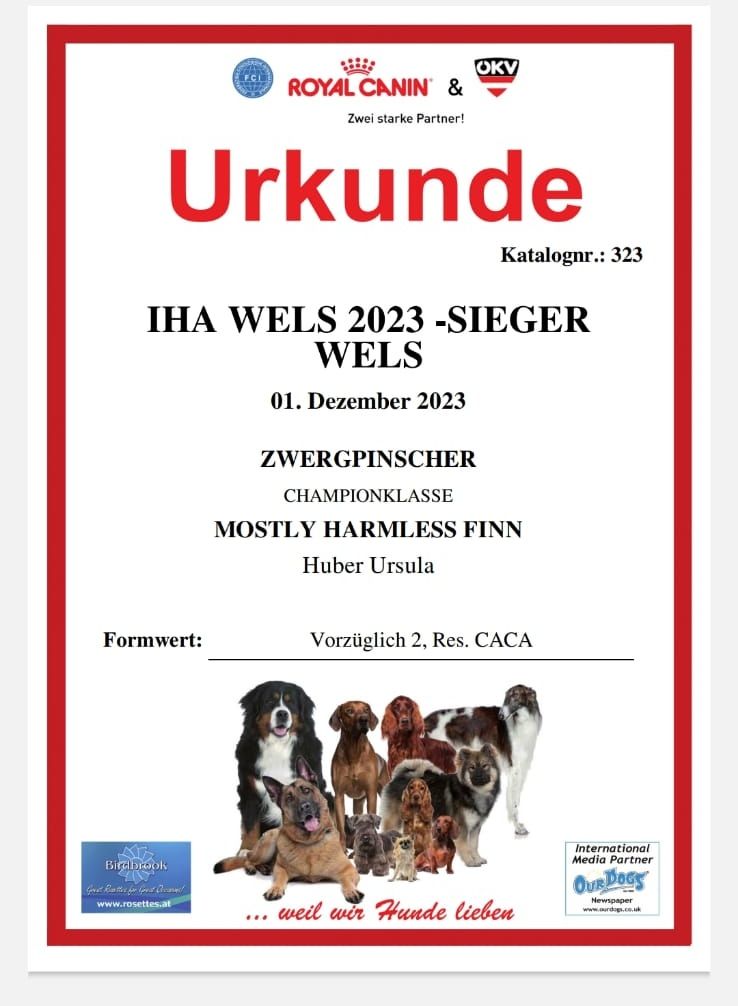 Die Urkunde ist angekommen Finn ist jetzt auch Österreichischer Champion
