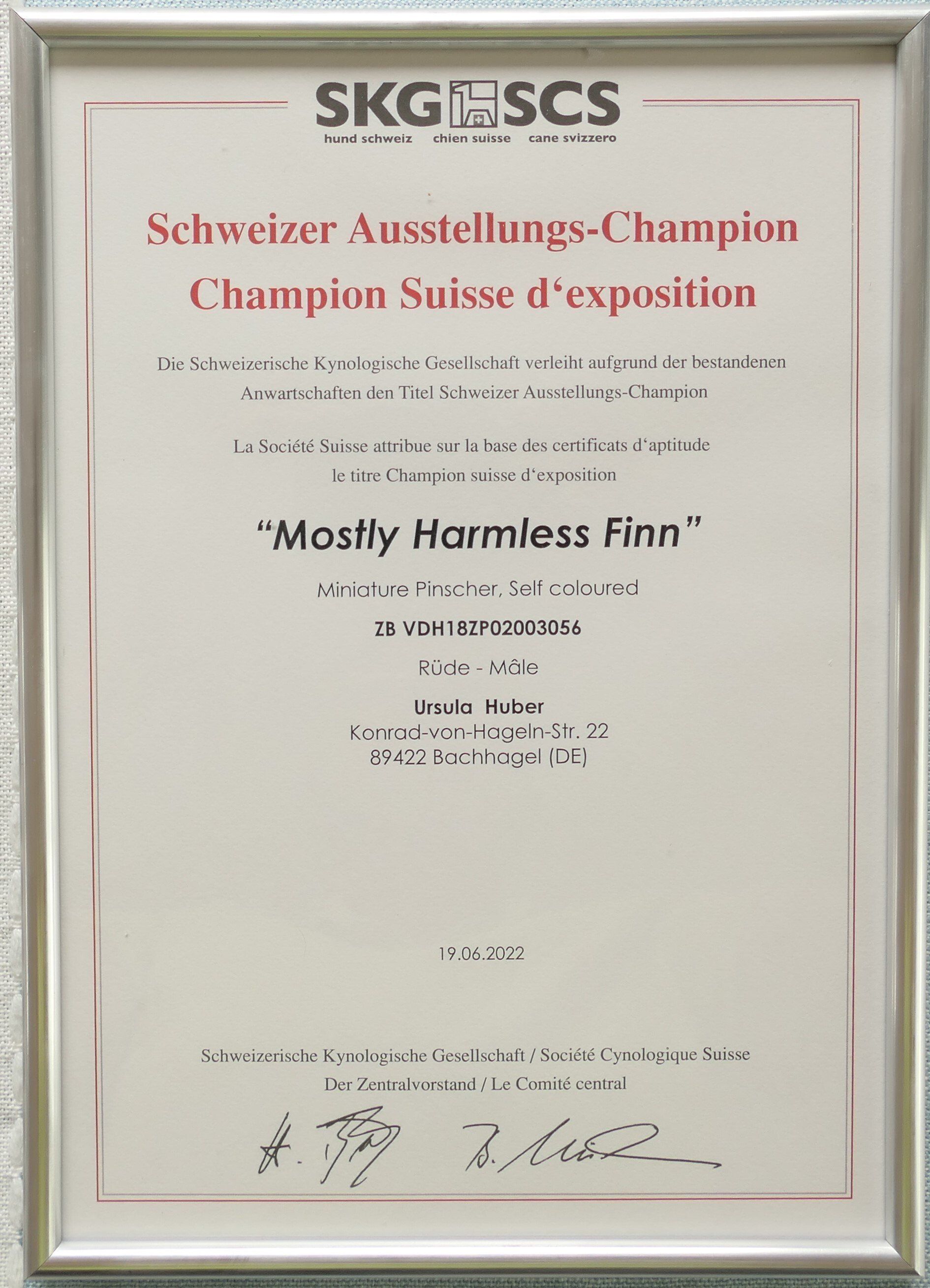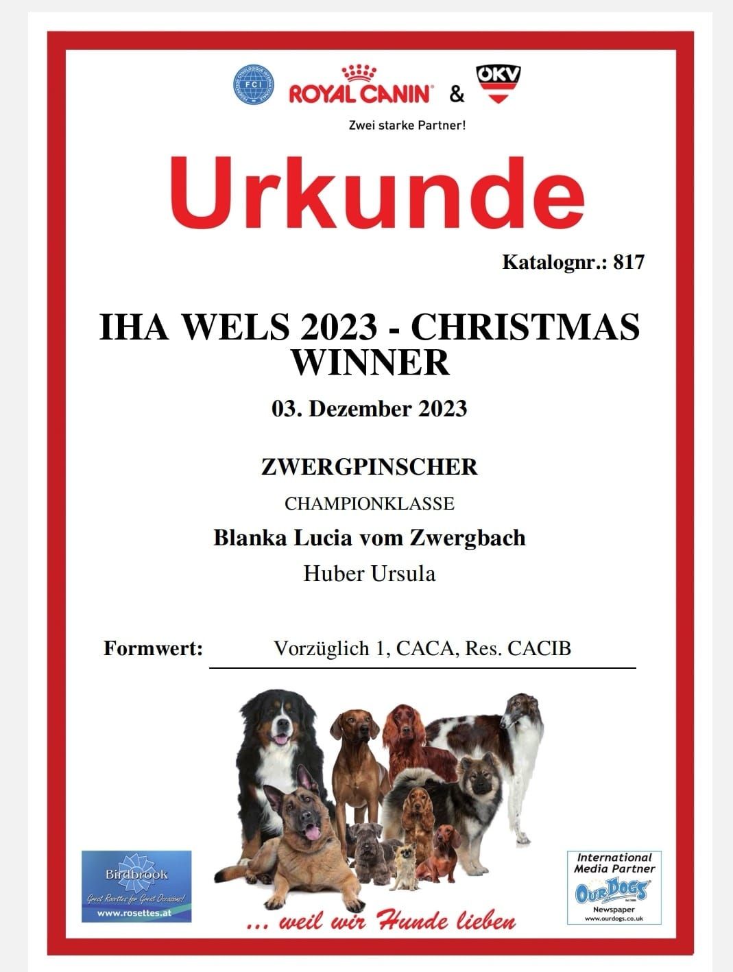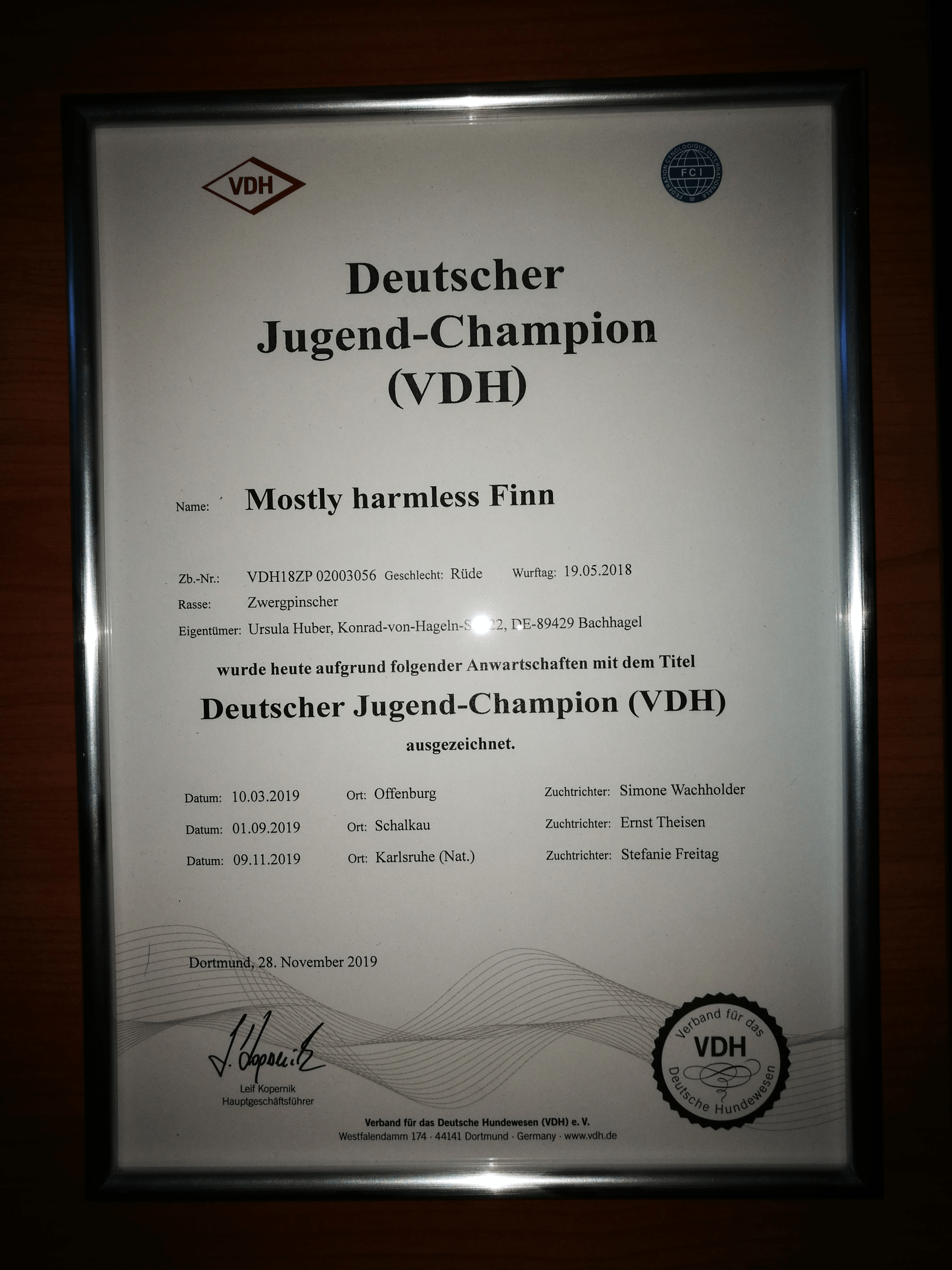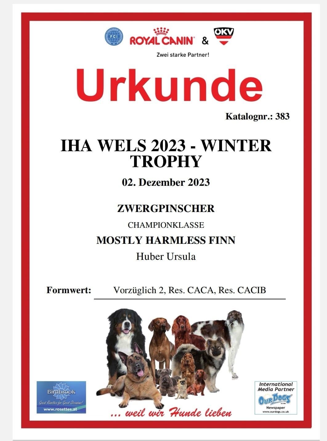 Die Urkunde ist angekommen Finn ist jetzt auch Österreichischer Champion