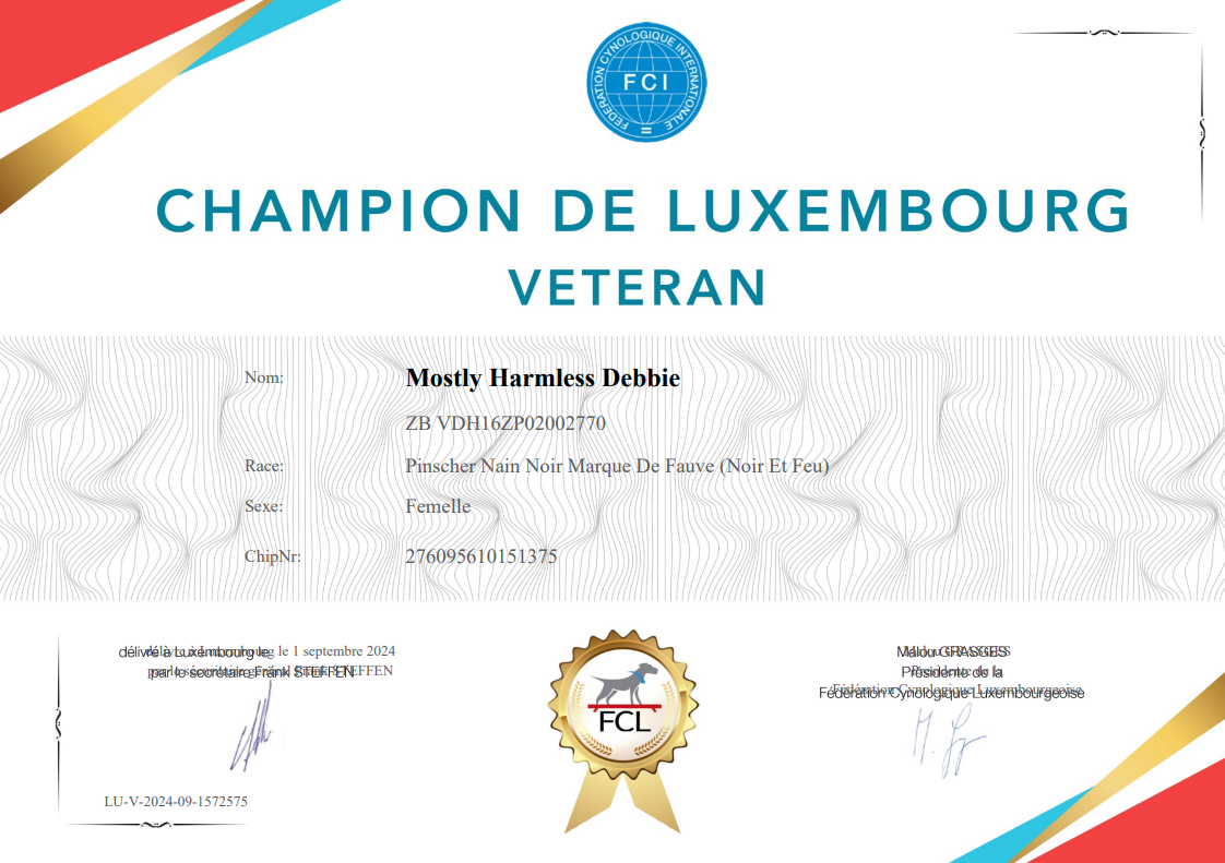 Debbie hat den Titel Champion de Luxembourg Veteran erzielt