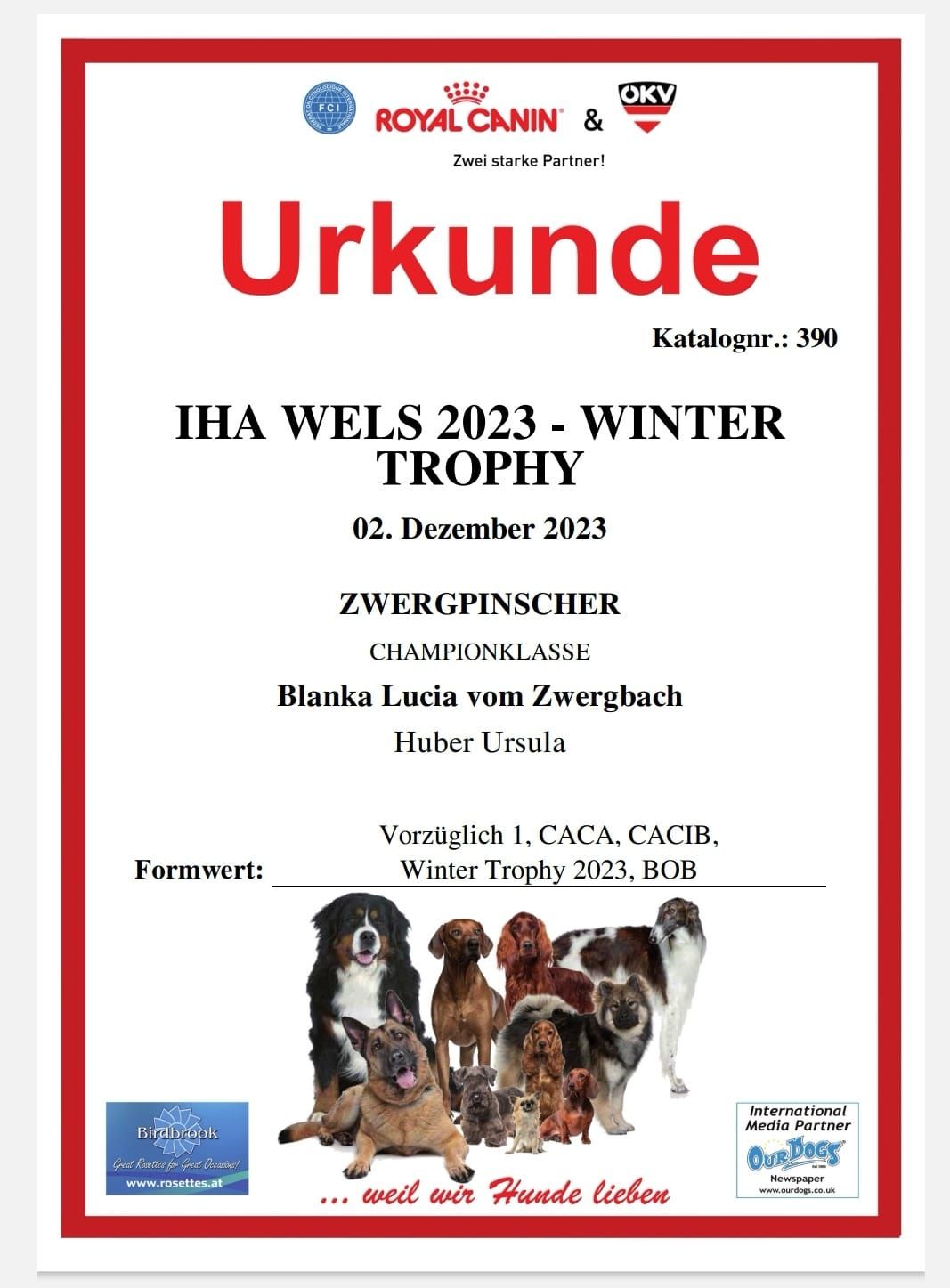 01.12.2023 Vorzüglich 1, CACA, CACIB, Sieger Wels 2023, BOS